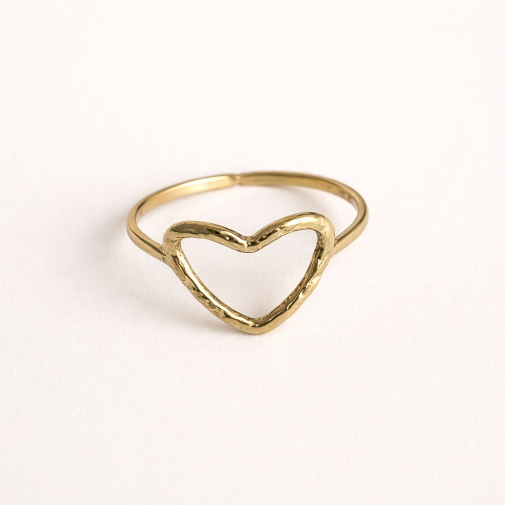 El Anillo Valeria destaca por su diseño minimalista con un corazón abierto en acabado dorado, una pieza sutil pero llena de significado. Su estilo elegante y atemporal lo convierte en el complemento perfecto tanto para el día a día como para ocasiones especiales.