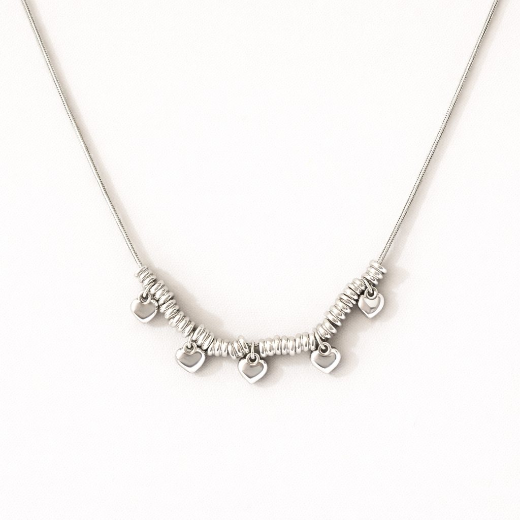 El Collar Amore es una pieza delicada y romántica con pequeños corazones que aportan un toque dulce y elegante.