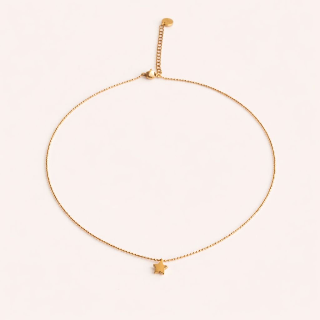 Collar dorado con cadena de bolitas y colgante estrella minimalista, perfecto para aportar un brillo sutil y elegante a cualquier look.