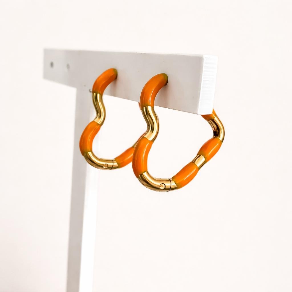 Los Pendientes Freya destacan por su delicada forma de corazón con detalles en color naranja que aportan un toque alegre y original. Una joya moderna y femenina perfecta para iluminar cualquier look.