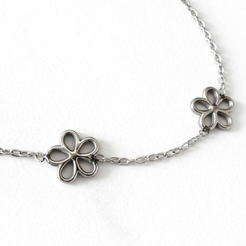 La Pulsera Fiore destaca por su diseño fino y minimalista, adornado con pequeñas flores que simbolizan la belleza natural y la delicadeza. Su acabado en color plateado la convierte en una pieza versátil, perfecta para combinar con cualquier estilo, desde looks diarios hasta ocasiones más especiales.
